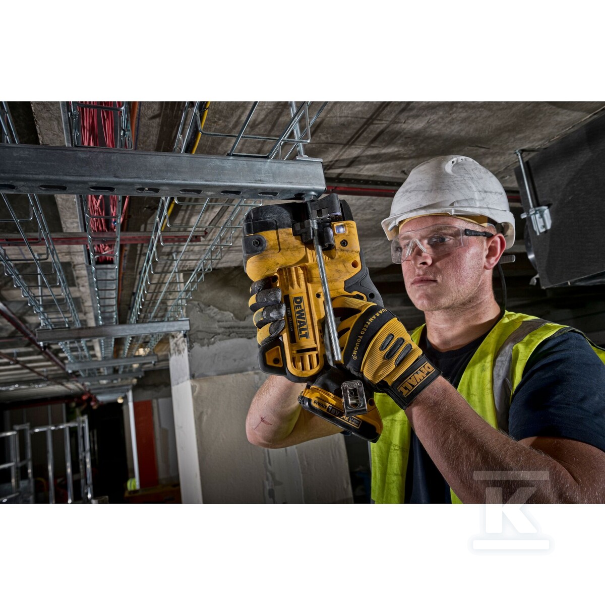 Конструкція ножиць дозволяє зручно працювати в різних положеннях, що підвищує гнучкість під час монтажу. Швидка заміна лез (M6, M8, M10, M12) за допомогою доданого імбусового ключа мінімізує простої. Вбудована світлодіодна лампа ефективно освітлює зону різання, забезпечуючи хорошу видимість навіть в умовах слабкого освітлення. Інструмент живиться від акумуляторів 18V XR Li-Ion (доступні окремо), що гарантує високу продуктивність і мобільність.