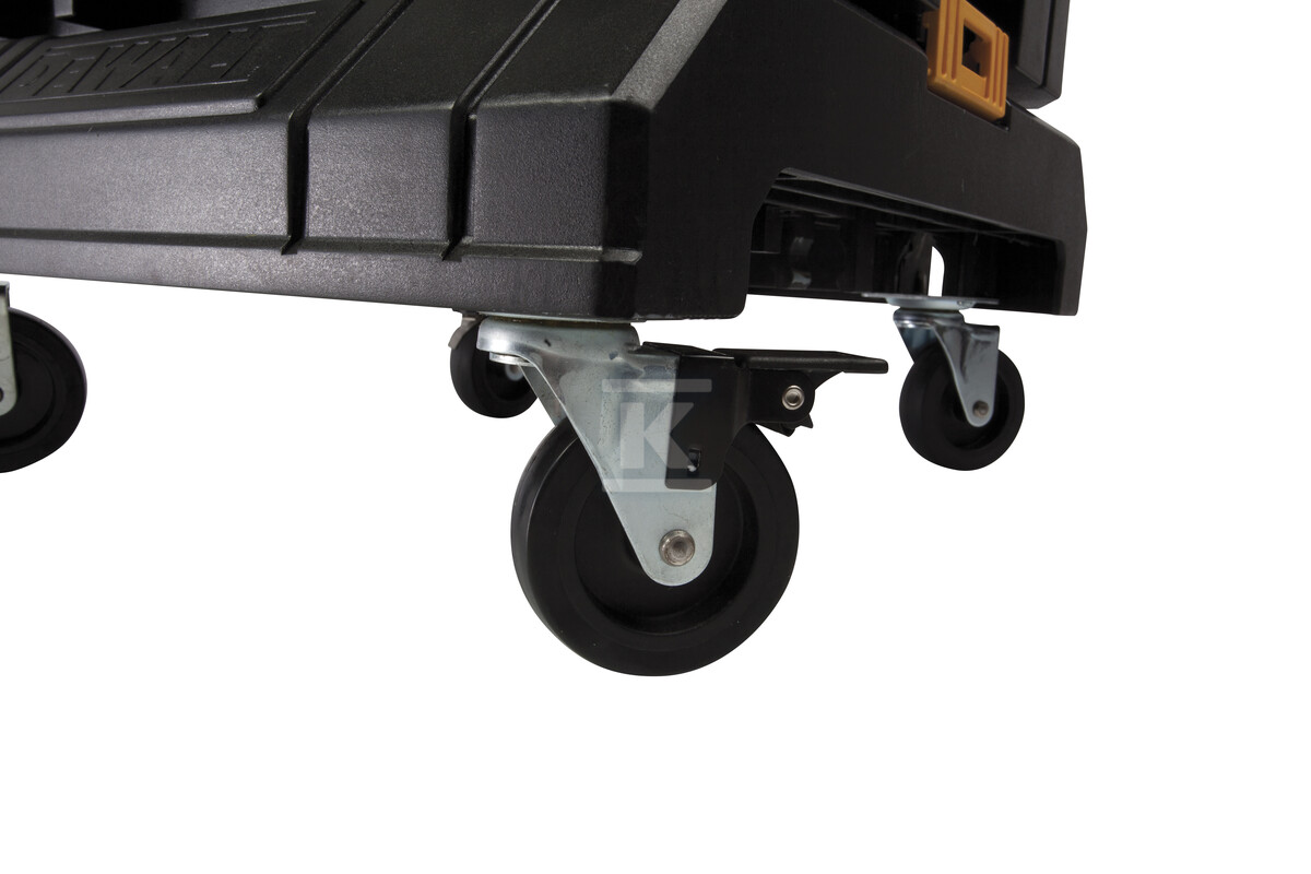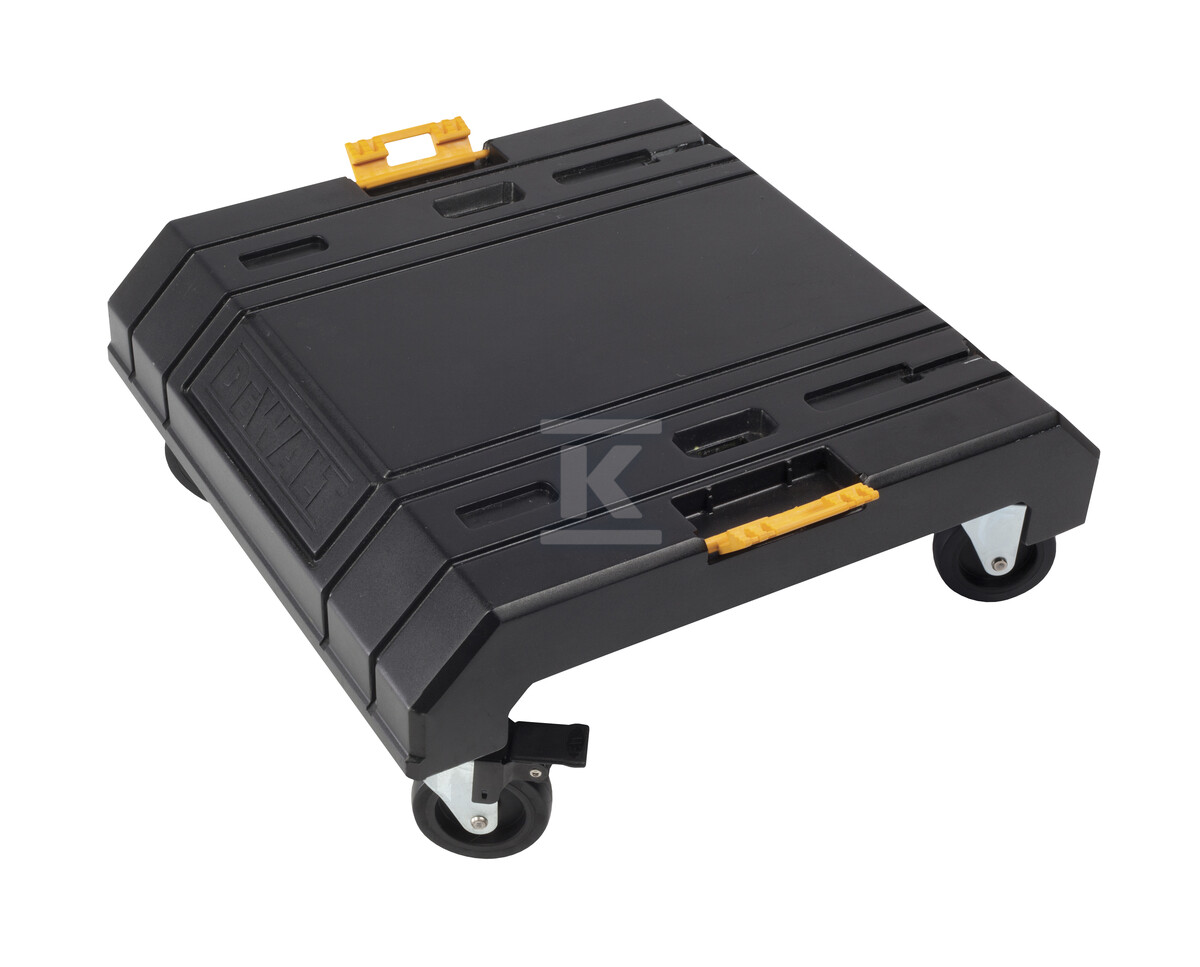 Візок DWST1-71229 вирізняється насамперед легкістю монтажу – ви швидко та без використання інструментів прикріпите до нього будь-який ящик з серії TSTAK. Чотири міцні поворотні колеса на 360° з блокуванням дозволяють плавно рухатися в тісних приміщеннях і стабільно встановлювати на місці роботи. Максимальне навантаження до 100 кг означає, що ви можете безпечно транспортувати навіть велику кількість інструментів та аксесуарів. Компактні розміри (486 мм ширини, 436 мм глибини та 181 мм висоти) полегшують зберігання у майстерні або автомобілі.