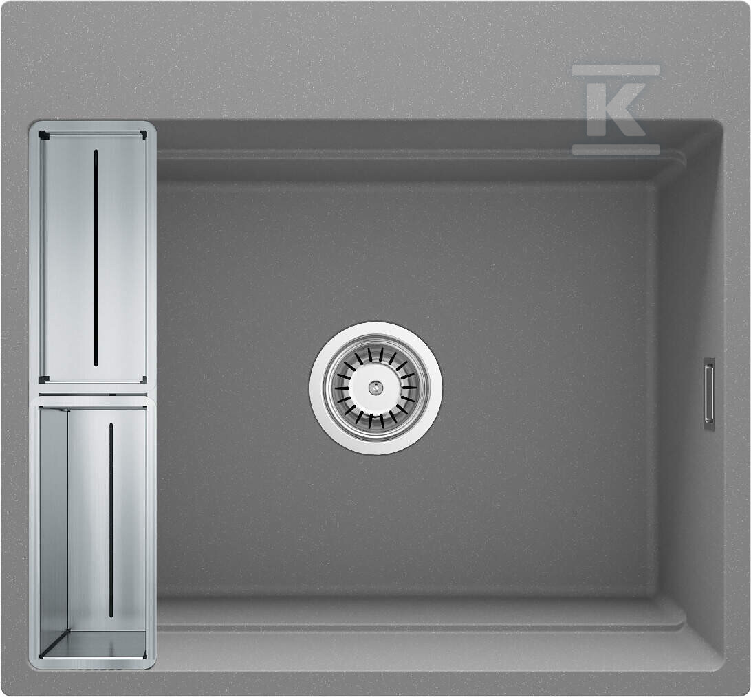 Мийка гранітна магнітна Magnetic, сірий металік, 1-камерна 560x520x220 мм + аксесуари Space-Saver Click ZRM_S10A