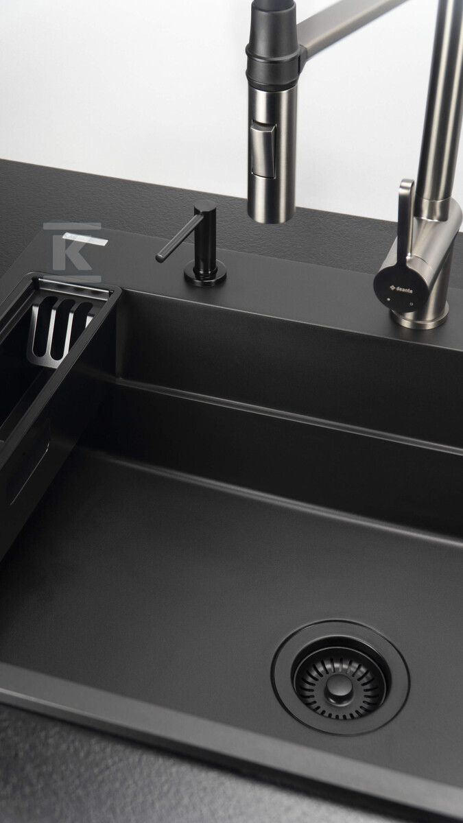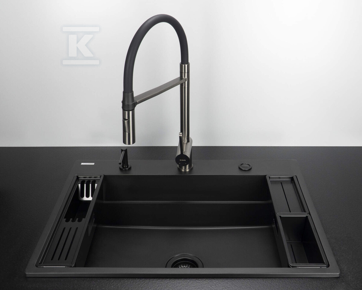 Виконаний зі сталі нержавіючої з матовим покриттям, набір не тільки чудово поєднується з сучасним дизайном кухні, але й гарантує довговічність і стійкість до корозії. Колір nero додає елегантності та витонченості. Уся конструкція розроблена таким чином, щоб ідеально підходити до мийок з колекції Magnetic.