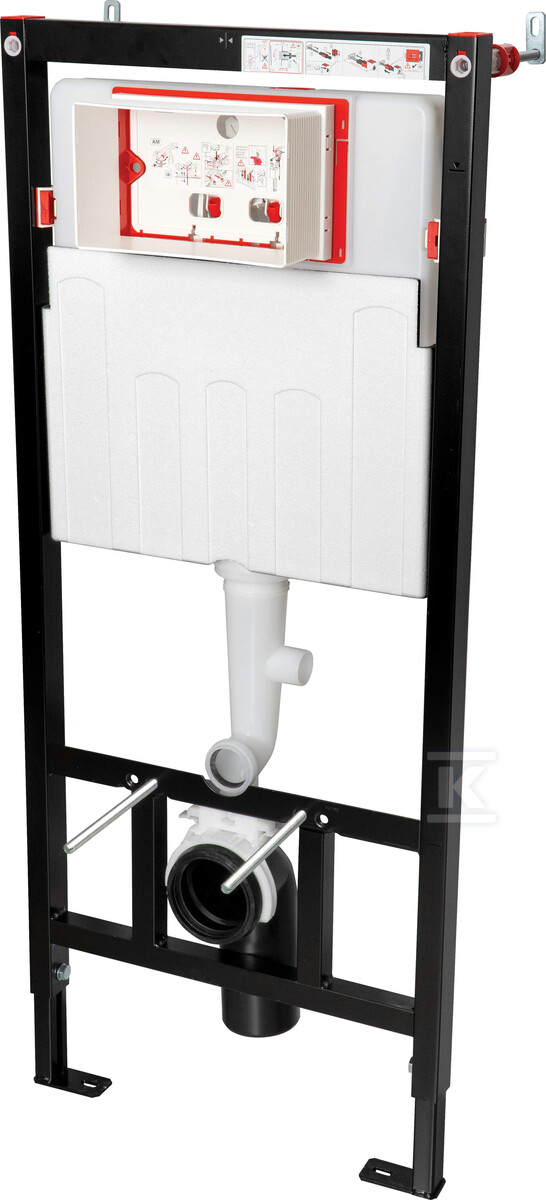 Каркас розроблено з урахуванням простоти монтажу та широкої сумісності. Міцна сталева рама забезпечує стабільність всієї конструкції, а можливість регулювання висоти (до 200 мм) дозволяє адаптувати її до індивідуальних потреб. Можливість обшивки як легкими перегородками, так і несучими стінами дає велику свободу в плануванні. Додаткова ущільнювальна прокладка зменшує шум під час змиву та наповнення бачка, що підвищує комфорт використання.