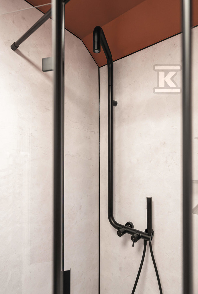 Серцем комплекту є душова батарея, виготовлена з високоякісної латуні, що гарантує надійність і довговічність. Душова стійка також виготовлена з латуні, забезпечуючи стабільність і міцність всієї конструкції. Душова лійка діаметром 42 мм, виготовлена з латуні товщиною 42 мм, пропонує оптимальний потік води у формі конуса – ідеальний для щоденного використання та розслабляючого масажу. У комплекті також входить шланг довжиною 1500 мм з обплетенням з ПВХ та функцією Anti-twist, що запобігає його скручуванню.