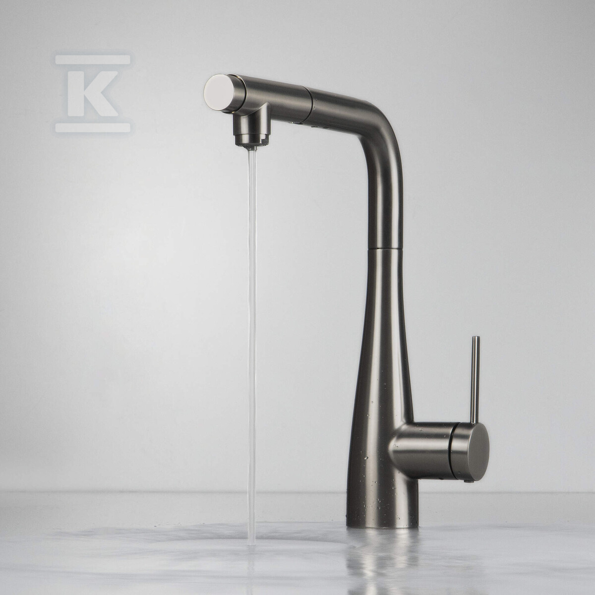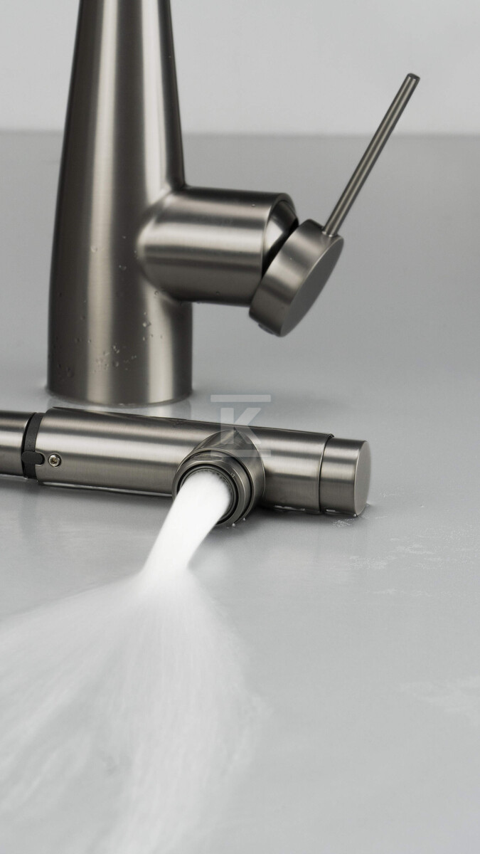Змішувач для кухні Eridan, титан, з висувним гусаком та підключенням до фільтра води BRE_D75M
