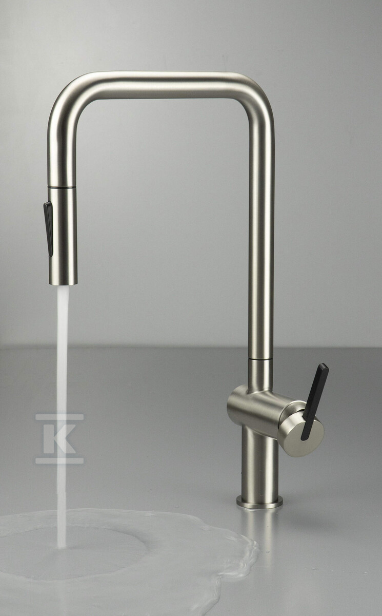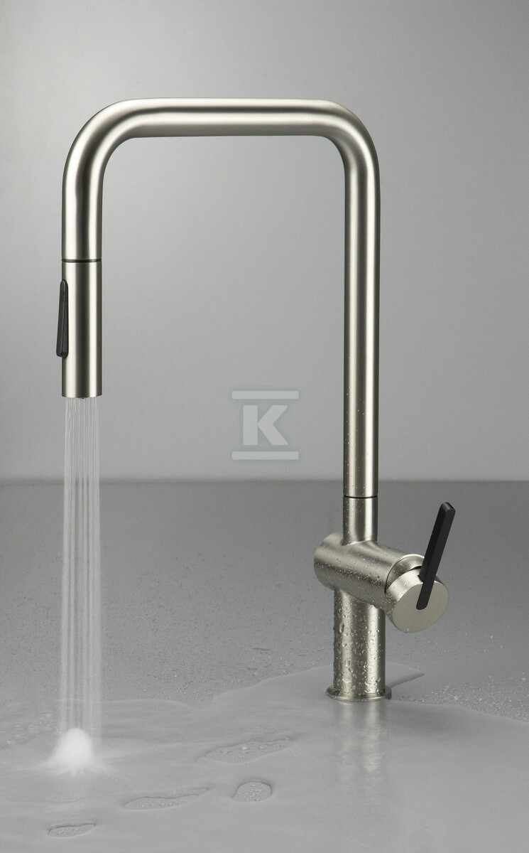 Змішувач для кухонної мийки Momi, матова нержавіюча сталь, з прямокутною висувною виликою "U" BKM_F73N