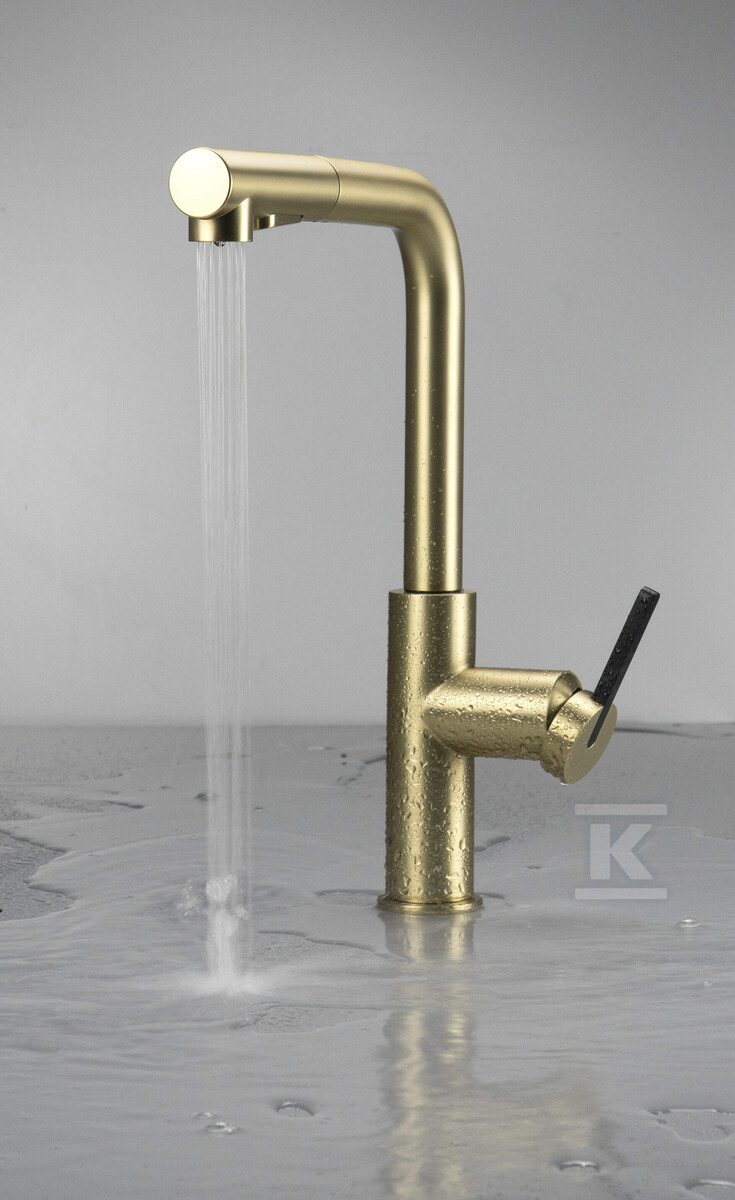 Змішувач для кухонної мийки Momi, золотий щоткований, з прямокутною висувною виливом BKM_R73M