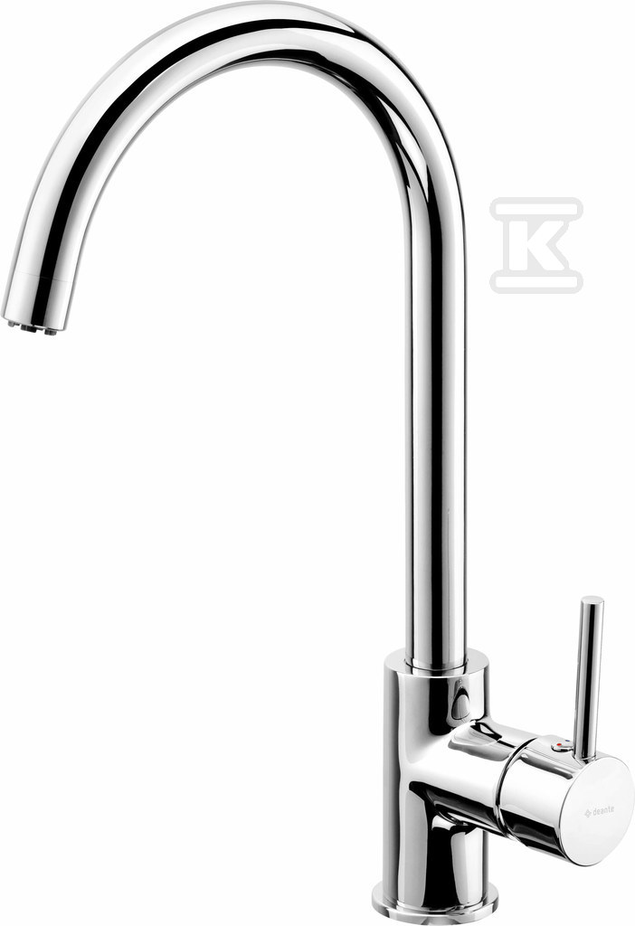 Змішувальна батарея для мийки монтується на стільниці або в отвір для батареї. Модель з виливом забезпечує зручність під час щоденних кухонних занять. Виготовлена з високоякісної латуні, гарантує довговічність та стійкість до корозії. Клас протікання A (9-15 л/хв) забезпечує оптимальне споживання води, а аератор насичує струмінь повітрям, роблячи його м'яким і приємним у використанні – це рішення не тільки збільшує комфорт миття, але й зменшує споживання води. Довжина приєднувальних шлангів становить 50 см, що полегшує монтаж у більшості стандартних установок.