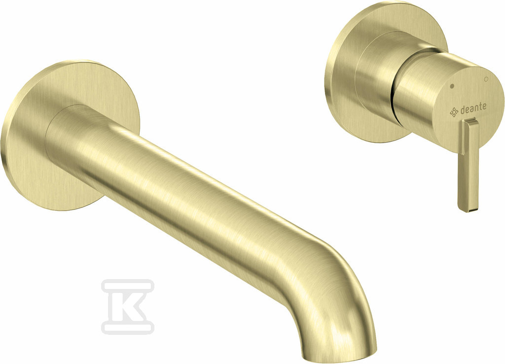Змішувач для раковини під стіну Silia – це поєднання мінімалістичного дизайну та високої якості виготовлення. Оздоблення в золотому щотковому кольорі надає йому розкішного характеру, який ідеально вписується в сучасні інтер'єри ванних кімнат. Це пропозиція для тих, хто цінує естетику та практичні рішення.
