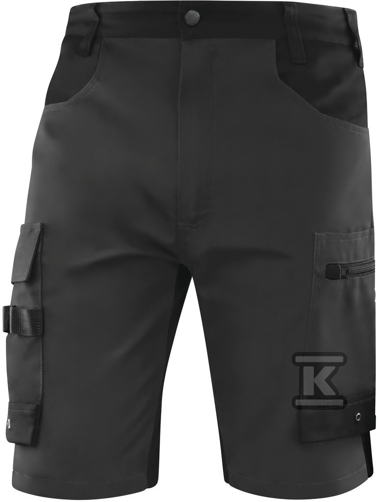 Поєднання бавовни та поліестеру забезпечує повітропроникність і легкість у догляді. Вставки з поліаміду та еластану зміцнюють критичні точки, схильні до стирання, а також додають еластичності, що перекладається на комфорт носіння навіть під час інтенсивної роботи. Ці бермуди не мають водонепроникних властивостей, але їхня міцна конструкція забезпечує захист у повсякденних умовах роботи. Доступні в розмірі M та в кольорі сіро-чорному – універсальному рішенні для багатьох професій.