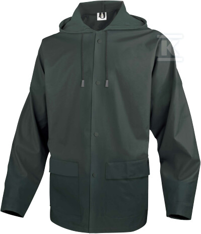 Куртка розроблена з урахуванням функціональності та довговічності. Зварені шви мінімізують ризик протікання води, а блискавка, прихована під планкою на застібках, забезпечує додатковий захист від холоду та вітру. Дві практичні кишені дозволяють зберігати необхідні дрібниці, забезпечуючи легкий доступ до них навіть під час роботи. Зовнішній матеріал – поліестер з PU-покриттям – стійкий до механічних пошкоджень, що гарантує тривале використання.