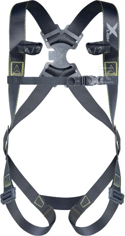 Завдяки двом точкам кріплення – задній та передній – шлейки дозволяють безпечно працювати в широкому спектрі застосувань. Їх можна використовувати під час будівельних, ремонтних, монтажних робіт, а також у рятувальних роботах або альпінізмі. Дві регулювальні пряжки та дві бічні регулювальні пластини дозволяють точно підігнати їх до тіла, забезпечуючи стабільність і комфорт навіть під час тривалої роботи. Захисник з пластику на спині додатково підвищує зручність використання.