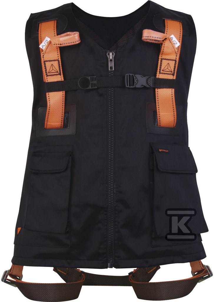 Вбудовані бретелі в робочому жилеті: бретелі (Ref. HAR12), жилет: 65% поліестер 35% бавовна. Підкладка з поліестерової сітки. Застібається на блискавку. 4 кишені, з яких 1 для телефону. Розмір регулюється за допомогою замків. Паси: Поліестер.Жилет: 65% поліестер 35% бавовна. Колір: Чорний. Розмір: XL/XXL