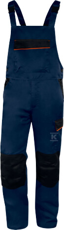 Крій loose забезпечує свободу рухів, а еластичні бретелі з регулюванням дозволяють ідеально підігнати його до фігури. Пояс, що регулюється за допомогою ґудзиків, додатково підвищує комфорт використання. Попередньо сформовані коліна покращують ергономіку праці, а аж 6 кишень – у тому числі спеціальна кишеня для рулетки – пропонують багато місця для інструментів та аксесуарів. Це рішення оцінять як монтажники, так і особи, які виконують ремонтні чи будівельні роботи.