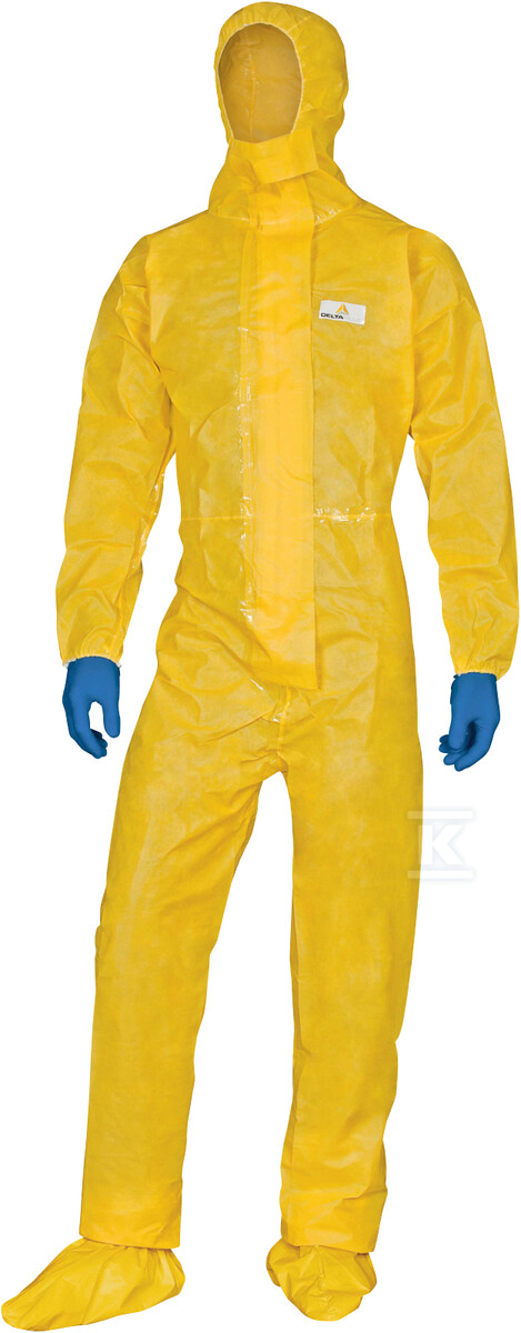 Комбінезон виготовлений з поєднання поліетилену та поліпропілену (матеріалу Deltachem), що забезпечує йому стійкість до розривів та опір дії багатьох хімічних речовин. Додатково: