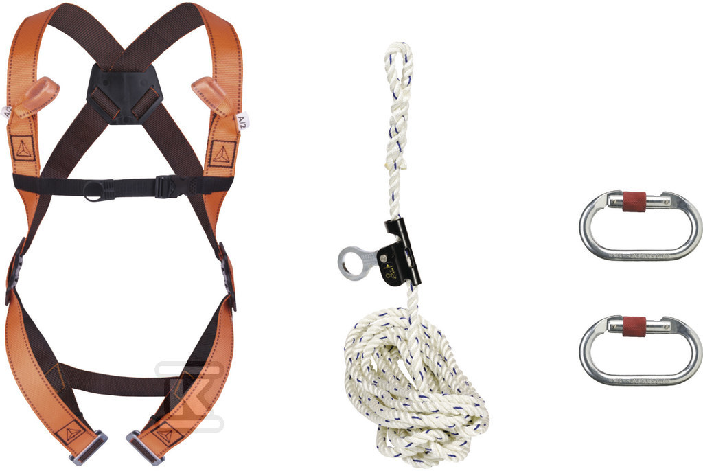 Цей комплект є готовим рішенням для осіб, які працюють на висоті, забезпечуючи комплексний захист і комфорт використання. Складається з страхувальних ременів, самозатискного пристрою з мотузкою та двох затискачів, що робить його ідеальним вибором як для професіоналів, так і для осіб, які випадково виконують роботи в місцях, небезпечних для падіння.