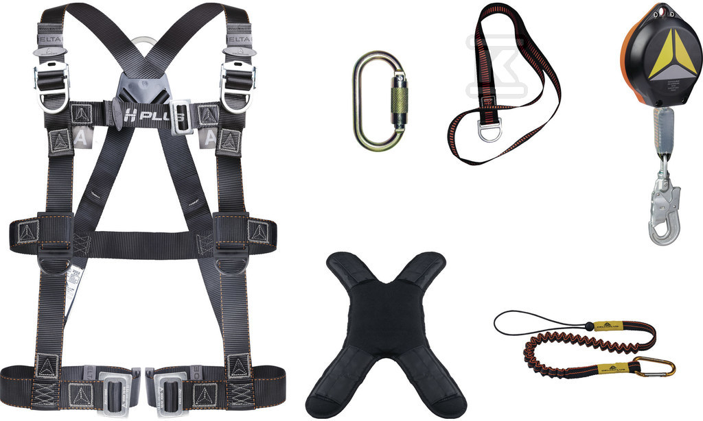 Цей набір, створений DELTA PLUS, є готовим рішенням для осіб, які працюють на висоті. Забезпечує комплексну охорону та комфорт під час виконання завдань, що вимагають страхування. Набір складається з ременів безпеки, самогальмуючого пристрою, анкерної петлі, тримача для інструментів та додаткових елементів, що підвищують безпеку та зручність роботи.