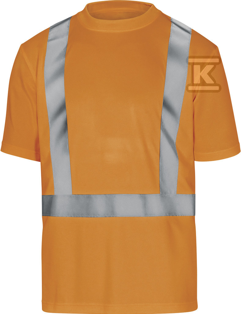 Ця футболка з коротким рукавом поєднує в собі комфорт і безпеку. Виготовлена на 100% з поліестеру щільністю 160 г/м², забезпечує комфортну температуру навіть під час інтенсивної роботи. Округлий виріз і приталений крій роблять її зручною для носіння протягом усього дня. Це не тільки робочий одяг, але й елемент, що покращує безпеку в місцях з обмеженою видимістю.