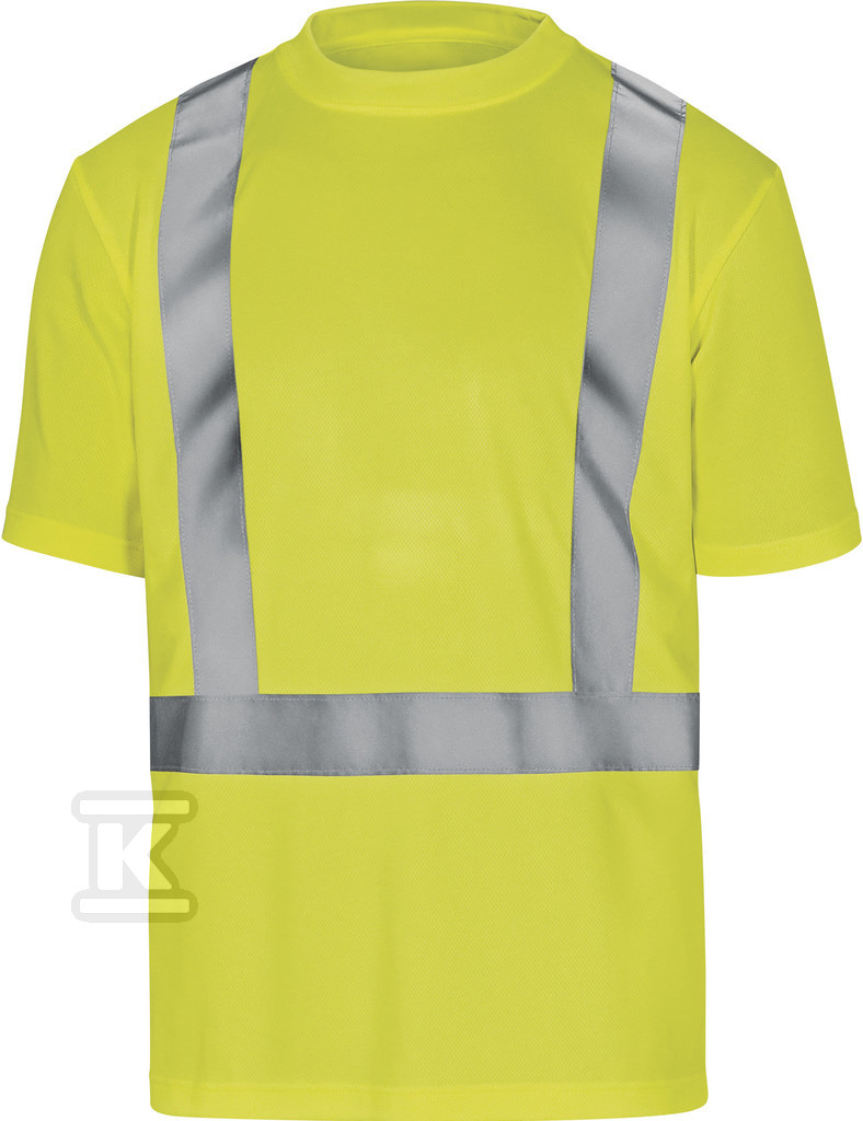 Ця сигнальна футболка з коротким рукавом – це поєднання комфорту та безпеки. Виготовлена на 100% з поліестеру щільністю 160 г/м², вона забезпечує комфортну температуру навіть під час інтенсивної роботи. Округлий комір і приталений крій гарантують свободу рухів, а стратегічно розташовані світловідбиваючі смуги підвищують видимість користувача в будь-яких умовах освітлення. Це ідеальний вибір для людей, які працюють у місцях з великим рухом або поганою видимістю.