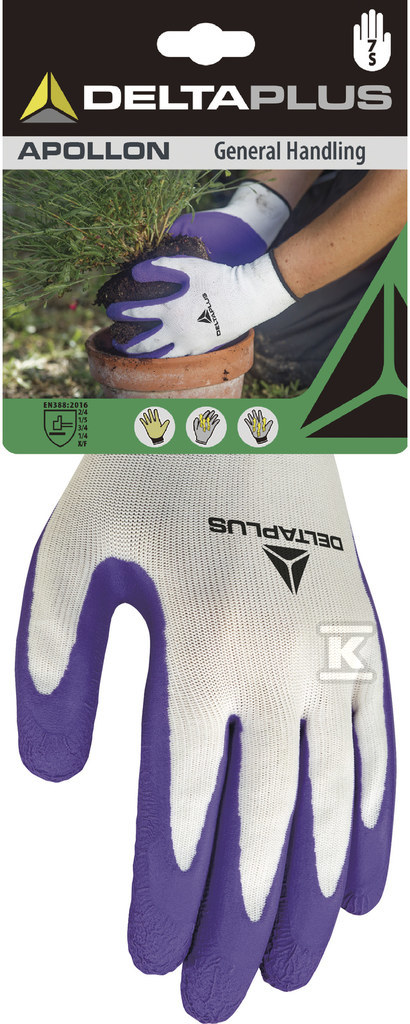 Рукавички збудовані в шві 13, що означає точне прилягання та підвищену спритність. Вкладка, виготовлена на 100% з поліестеру, забезпечує комфорт при носінні, а латексне покриття – хорошу адгезію навіть у вологих умовах. Комбінація цих матеріалів робить рукавички міцними та стійкими до механічних пошкоджень. Біло-фіолетовий колір полегшує ідентифікацію рукавичок на робочому місці.