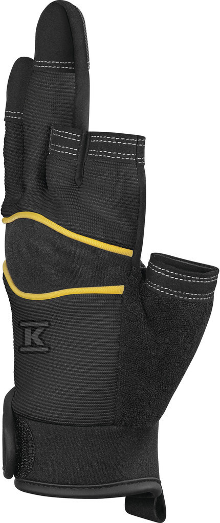 Ці рукавички вирізняються унікальним рішенням – трьома вирізаними пальцями, які забезпечують максимальну точність під час маніпулювання дрібними елементами. Тильна сторона, виготовлена з поєднання поліестеру та еластану, забезпечує еластичність та прилягання до руки, а підкладка з поліестеру підвищує комфорт використання. Манжета з неопрену стабілізує зап'ястя та забезпечує додатковий захист.