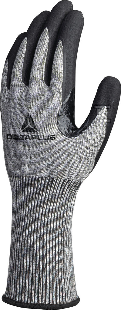 Рукавиці в'язані з волокна deltanocut, долоня покрита піною нітриловою, посилення великого/вказівного пальця, в'язка 13 сіро-чорний 9 VECUTD03GR09