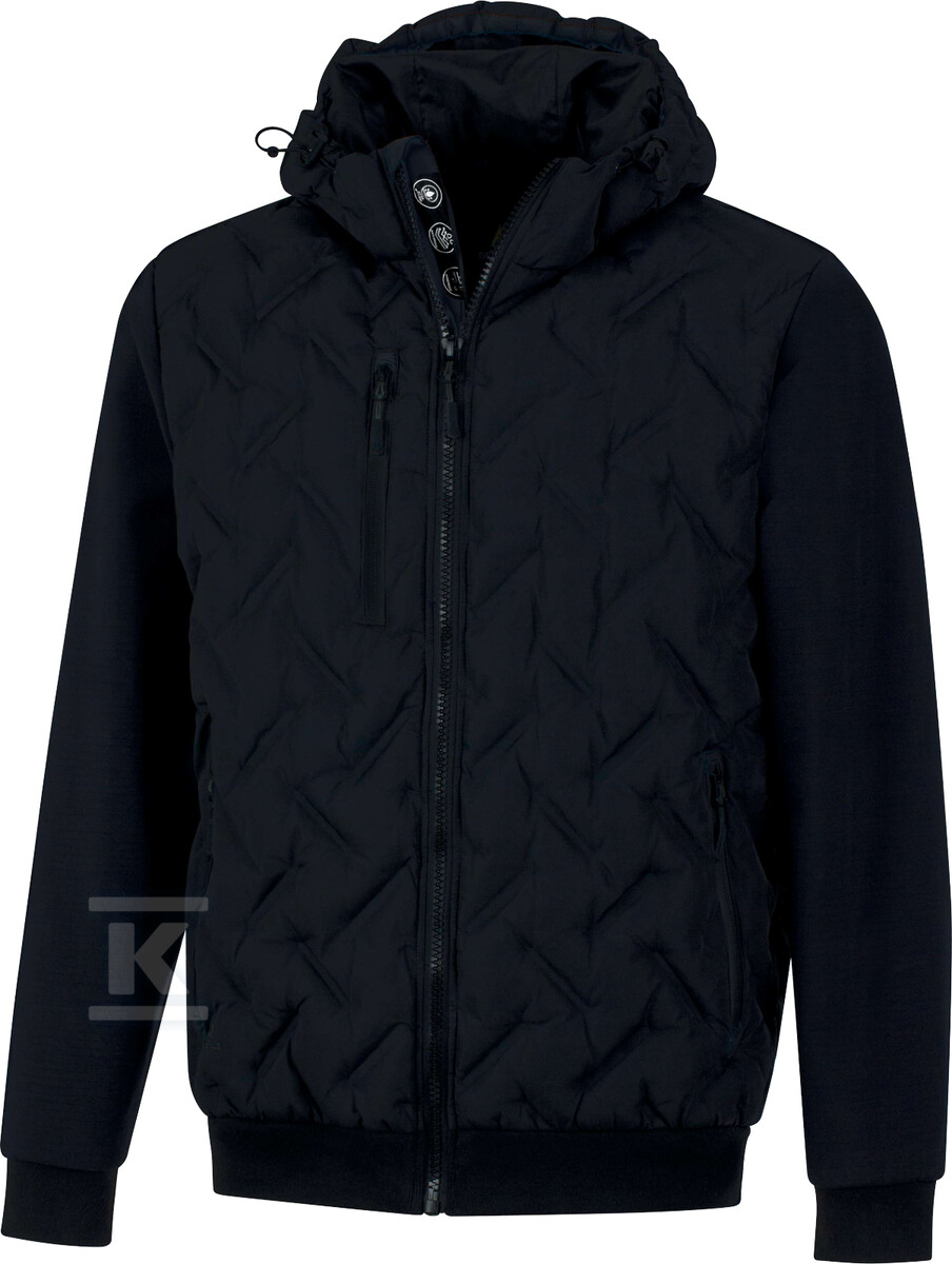 Куртка має стаціонарний, утеплений капюшон, прихований блискавкою та три кишені – включаючи одну внутрішню – що підвищує її функціональність. Низ рукавів та низ куртки оздоблені тасьмою зі скосу, що забезпечує прилягання та захищає від холоду.