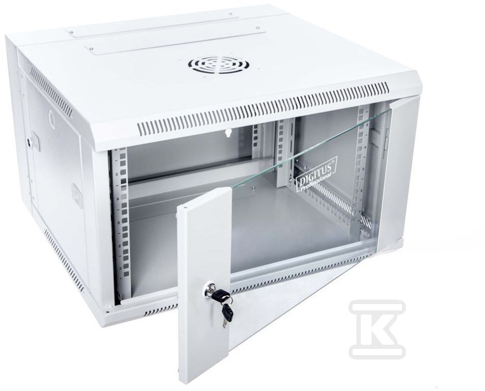 Шафа поставляється в зібраному стані, що мінімізує час, необхідний для підготовки до використання. Виготовлена зі сталевого листа, забезпечує стабільність і міцність, а сіре покриття надає їй професійний вигляд. Монтажні профілі 19" розташовані як спереду, так і ззаду шафи, що забезпечує велику гнучкість в організації простору. Двері з гартованого скла дозволяють візуально контролювати стан пристроїв без необхідності відкривання шафи. Крім того, шафа має чотири виламувані кабельні входи – два ззаду та по одному у верхній і нижній кришці – що полегшує прокладку кабелів.