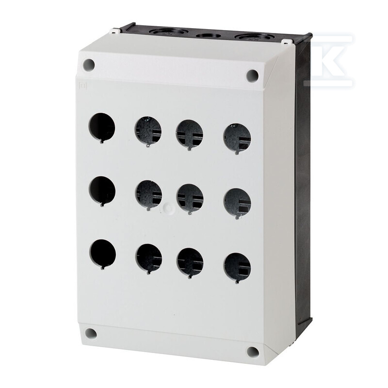 Корпус M22-I12 забезпечує високий ступінь захисту (IP66 і NEMA 3R) завдяки використанню штучного матеріалу. Має 12 позицій для керуючих елементів з отворами діаметром 22,5 мм, а його розміри становлять 240 мм глибини, 125 мм висоти та 160 мм ширини.