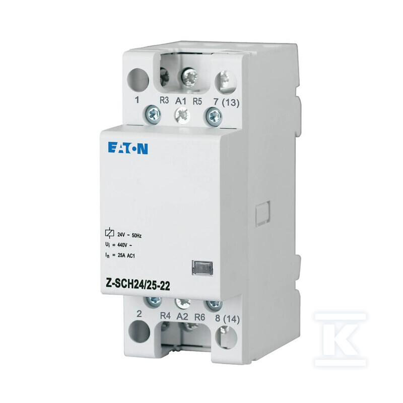 Цей 2-модульний перемикач (ширина 36 мм) працює при номінальній напрузі 440V AC і номінальному струмі 25A. Живлячись керуючою напругою 20.4-26.4V AC, він чудово підійде для систем керування освітленням, опаленням або вентиляцією. Має два нормально закритих і два нормально відкритих контакти, що забезпечує гнучкість у конфігурації ланцюгів. Глибина вбудовування 60 мм дозволяє легко монтувати в електричних щитах. Цей перемикач відповідає категорії використання AC-1, що означає, що він призначений для ввімкнення резистивних навантажень, таких як обігрівачі або лампи.