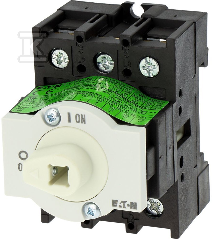 Номінальний безперервний струм становить 32 A, а номінальна робоча напруга – 690…690 V. Номінальна робоча потужність для AC-23 при 400 V становить 15 кВт, а для AC-3 також при 400 V – 13 кВт. Пристрій характеризується номінальним витримуваним струмом короткого замикання на рівні 0.64 кА та ступенем захисту IP65 (лицьова сторона). Роз’єднувач має три полюси та використовує гвинтове з’єднання головних контактів.
