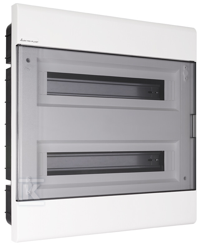Розподільна коробка SRp-36/2B пропонує місце для 36 модулів (2x18 модулів), що дозволяє створити розширену та функціональну електроустановку. Прозорі двері з полікарбонату (PC) дозволяють швидко візуально контролювати стан пристроїв без необхідності відкривання корпусу. Максимальний переріз провідника – 30 мм².