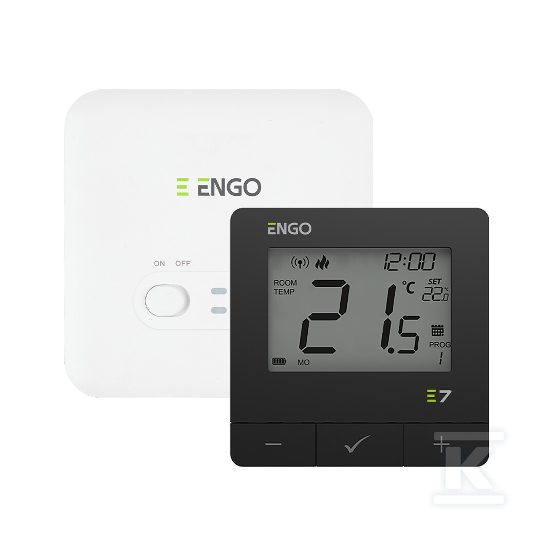 Регулятор ENGO E7-RFB пропонує широкий спектр можливостей адаптації до індивідуальних потреб. Доступні режими роботи день/ніч дозволяють автоматично знижувати температуру в періоди, коли немає потреби підтримувати повний тепловий комфорт. Можливість співпраці як з опаленням, так і з охолодженням робить пристрій універсальним і може бути використаний протягом усього року. Завдяки фабричному спаруванню пристроїв з унікальними кодами комунікації, монтаж швидкий і безпроблемний, а ризик перешкод мінімальний.