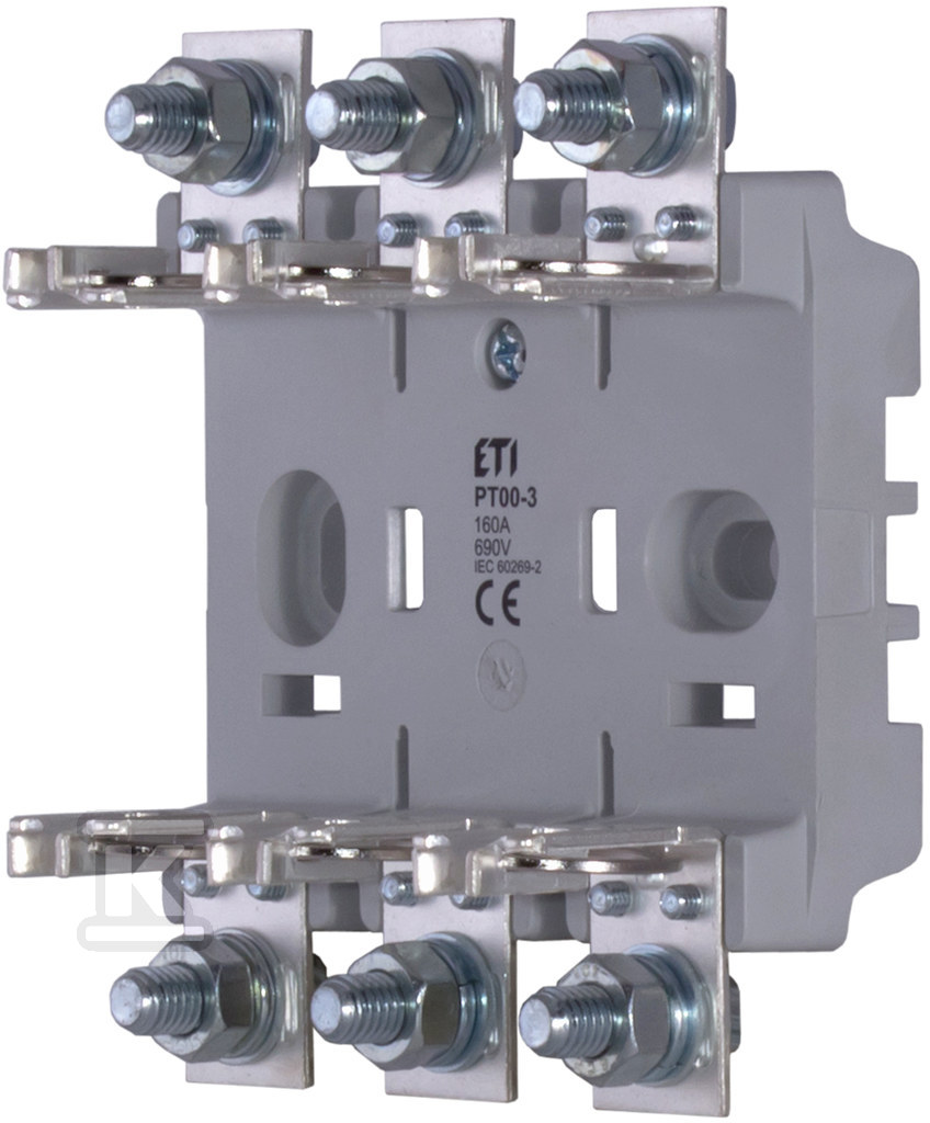 Основа сумісна із запобіжниками з номінальним струмом до 160A. Її конструкція дозволяє легко монтувати та замінювати запобіжники, що сприяє мінімізації часу простою під час обслуговування або ремонту. Знаходить застосування в розподільних щитах, шафах управління та інших інсталяціях, які потребують захисту від наслідків аварій. Ідеально підходить як для професійних монтажників, так і для кінцевих користувачів, які піклуються про безпеку своєї інсталяції.