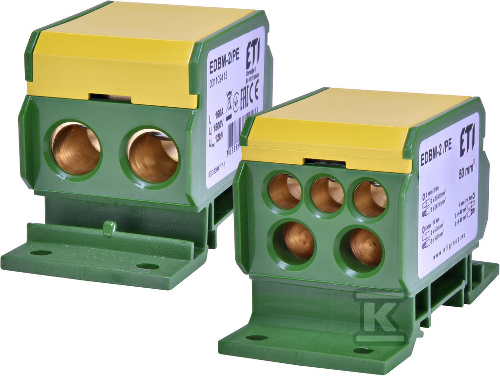 Блок розподілу 160A (2x4-50mm2/2x4-35mm2+3x2,5-25mm2) жовто-зелений EDBM-2/PE 001102413
