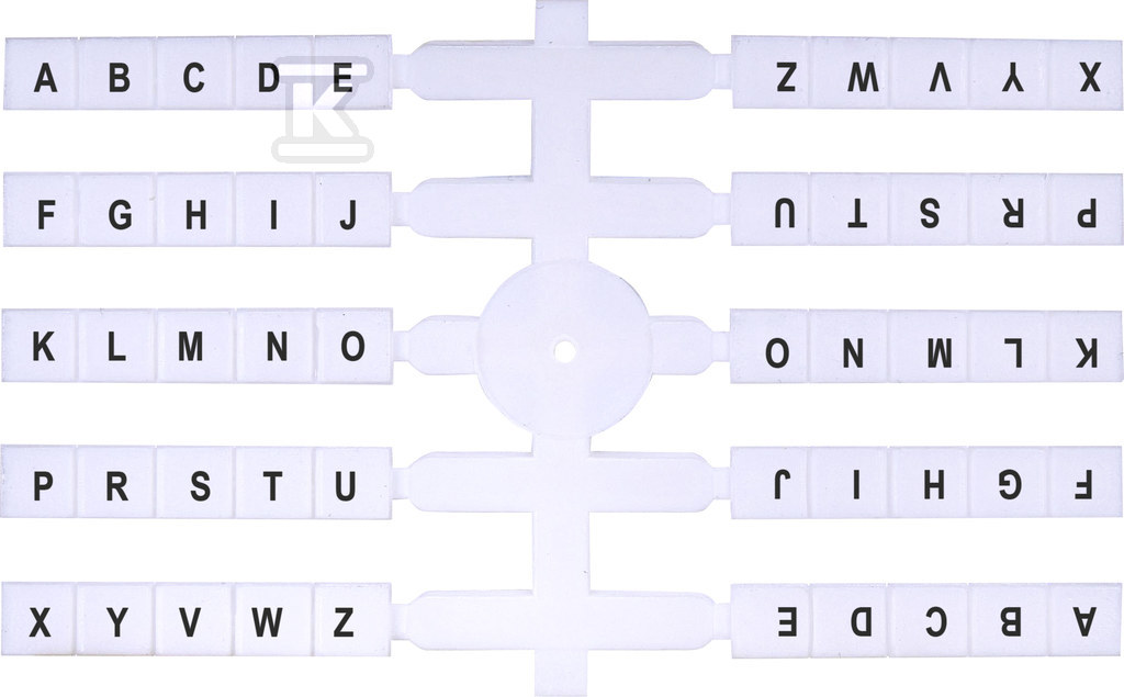 Маркувальники, виготовлені в білому кольорі, забезпечують хорошу видимість маркувань. Друк літер полегшує швидку ідентифікацію окремих проводів та з'єднувачів, що особливо важливо під час обслуговування або розширення установки. Розташування растру, що становить 4.8 мм, гарантує сумісність з більшістю стандартних з'єднувачів. Напрямок кодування – горизонтальний – забезпечує читабельність маркувань навіть у тісних просторах.