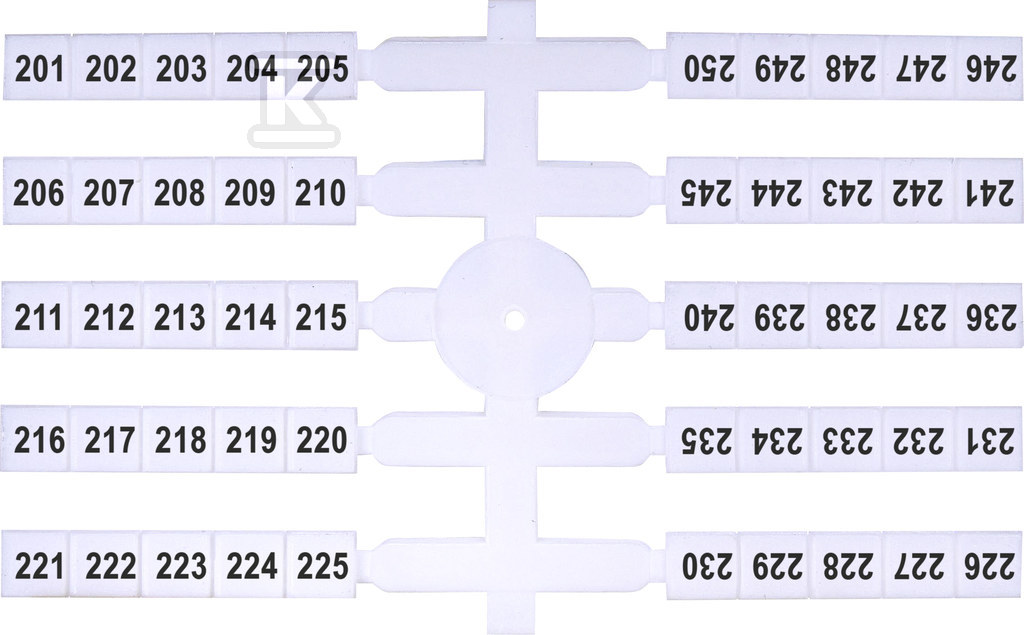 Виготовлені з міцного пластику, маркувальники стійкі до стирання та умов навколишнього середовища, що панують у типових електричних установках. Розташування растру 4.8 мм забезпечує сумісність з більшістю стандартних з'єднувачів. Горизонтальний напрямок кодування гарантує читабельність позначень навіть у тісних просторах. Білий колір забезпечує хорошу видимість та контраст з темними проводами.