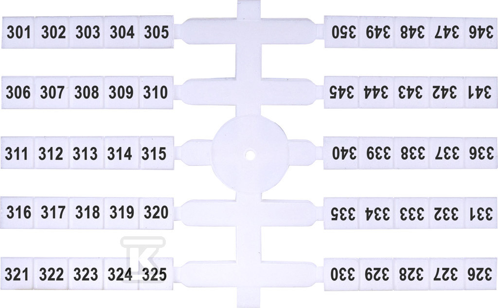 Маркувальники призначені для використання в розподільчих щитах, шафах управління та інших місцях, де потрібна точна ідентифікація елементів. Завдяки горизонтальному напрямку кодування та растру 4.8 мм, вони забезпечують читабельність маркувань навіть у складних умовах. Білий колір та цифровий друк збільшують контрастність та полегшують зчитування інформації. Набір містить 4 котушки по 50 штук маркувальників з нумерацією від 301 до 350.
