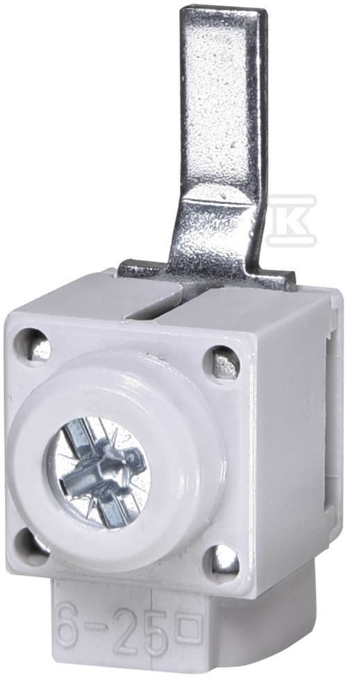 Цей затиск однополюсний і розроблений для роботи з провідниками з перерізом 25mm². Його універсальність полягає в можливості застосування в інсталяціях з номінальною напругою AC до 690V та DC до 1500V. Завдяки цьому він знайде застосування в різноманітних додатках – від промислових інсталяцій до передових систем живлення. Компактний розмір (1 модуль) дозволяє економно використовувати простір у розподільних шафах.