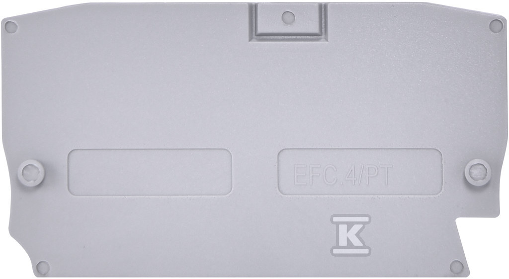 Це спеціалізована крайова пластина, призначена для використання разом із ізольованими шинами ESH-EFC.4. Виконує функцію кінцевої заглушки, забезпечуючи естетичне та безпечне завершення установки. Її нейтральний сірий колір добре поєднується з більшістю інтер’єрів.