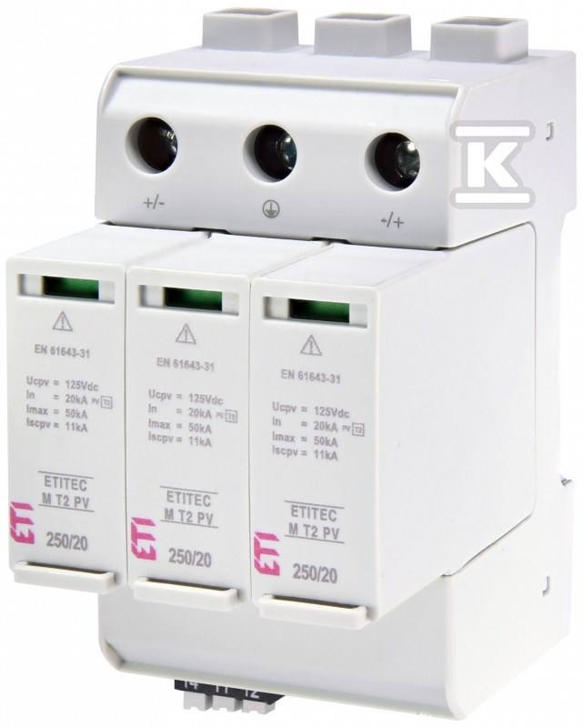 Обмежувач імпульсної напруги T2 (C) - для систем PV ETITEC M T2 PV 250/20 Y RC 002440733