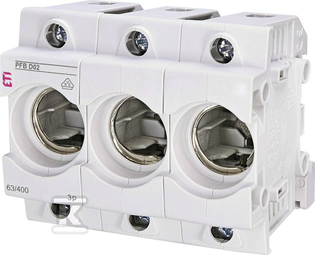 Основа запобіжника PFB D02, виготовлена з високоякісної пластмаси, характеризується хорошою електричною ізоляцією та механічною міцністю. Призначена для монтажу на DIN-шині (TH35), що забезпечує стабільність і легкість заміни запобіжників. Триполюсна конструкція дозволяє захистити всі фазні провідники в ланцюзі. Застосування в таких гніздах запобіжників D02 дозволяє швидко ідентифікувати перегорілий елемент і його швидку заміну без необхідності вимкнення всього ланцюга (залежно від конфігурації інсталяції).
