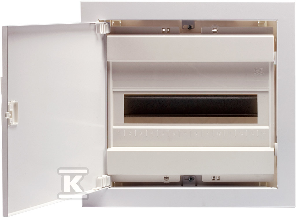 Коробка виготовлена з високоякісного синтетичного матеріалу білого кольору і має 14 модулів простору для монтажу. Глибина вбудовування становить 88 мм, а ширина — 346 мм, що дозволяє зручно розмістити обладнання. Підштукатурний монтаж забезпечує дискретний вигляд інсталяції. Коробка має клас захисту II, що означає підсилену або подвійну ізоляцію — немає з’єднання з захисним провідником. Виготовлено відповідно до Директиви щодо електромагнітної сумісності (EMC), що забезпечує мінімізацію електромагнітних завад.