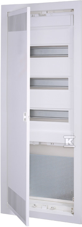 Ця трирядкова телекомунікаційна шафа, призначена для підтинькового монтажу, є ідеальним рішенням як для професіоналів, так і для кінцевих користувачів. Забезпечує естетичне та функціональне місце для встановлення телекомунікаційного обладнання (роутери, розподільники сигналу TV) та електричного (захисні пристрої). Конструкція шафи дозволяє легко адаптувати її до різних потреб і забезпечує безпечне прокладання кабелів.