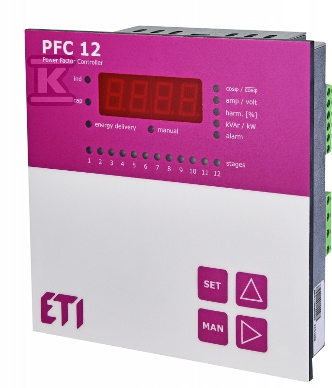 Регулятор коефіцієнта потужності PFC 12 RS – це пристрій, призначений для автоматичної компенсації реактивної потужності в електричних установках. Його завданням є підтримання коефіцієнта потужності (cos φ) на оптимальному рівні, близькому до одиниці. Це перекладається на ефективніше використання електроенергії, зниження рахунків за електроенергію та покращення стабільності мережі. Пристрій особливо корисний у промислових об'єктах, майстернях і комерційних будівлях з великим споживанням енергії.