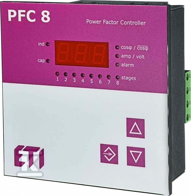 PFC 8 RS – це компактний модульний пристрій, призначений для монтажу в електричних розподільних щитах. Його міцна конструкція та високий ступінь захисту (IP54, IP20) гарантують надійну роботу навіть у складних умовах навколишнього середовища. Цей регулятор знаходить застосування всюди, де є потреба у покращенні коефіцієнта потужності, тобто в установках з індуктивними приймачами, такими як двигуни, трансформатори або люмінесцентні лампи. Завдяки цьому дозволяє уникнути штрафів за споживання реактивної потужності, що нараховуються постачальниками енергії.