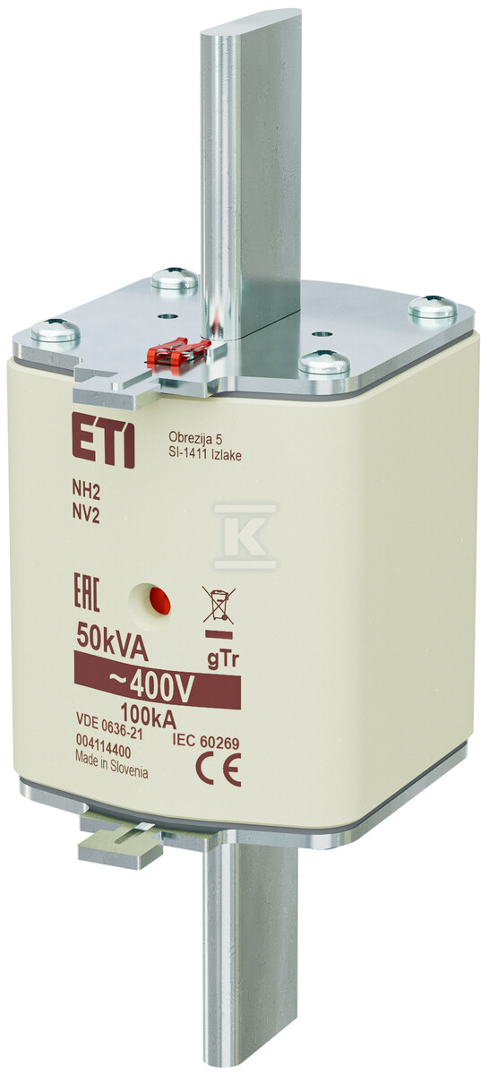 Вставка характеризується номінальним струмом 72A і пристосована до роботи в ланцюгах з напругою 400V. Позначення gTr вказує на її спеціалізацію – захист трансформаторів від наслідків коротких замикань і перевантажень. Завдяки цьому, у разі аварії трансформатора, вставка швидко перегорає, відключаючи його від мережі та запобігаючи подальшим пошкодженням. Має комбінований (подвійний) індикатор спрацювання, який полегшує ідентифікацію перегорілої вставки без необхідності демонтажу.
