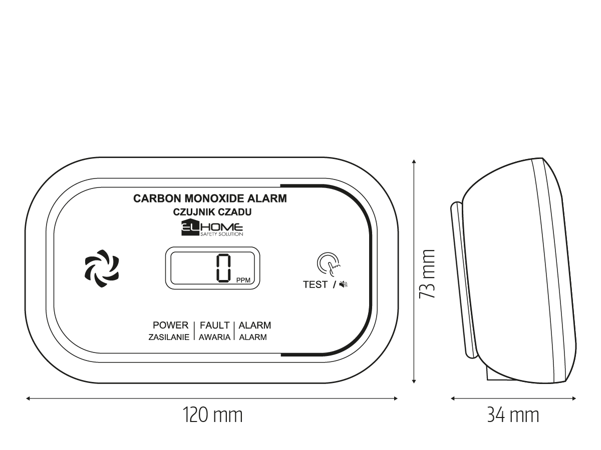 Датчик EL HOME CD-17A2v2300/B живиться від батарейок (2x LR6 – батарейки в комплекті), що забезпечує незалежність від електромережі та легкість монтажу. Обладнаний чітким рідкокристалічним дисплеєм (LCD), який показує поточну концентрацію монооксиду вуглецю. Додатково сигналізує про необхідність заміни батарейок та зношеність сенсора. Акустичний та оптичний сигнал тривоги ефективно інформує про перевищення безпечного рівня CO. Завдяки компактним розмірам, датчик легко адаптувати до будь-якого інтер'єру.