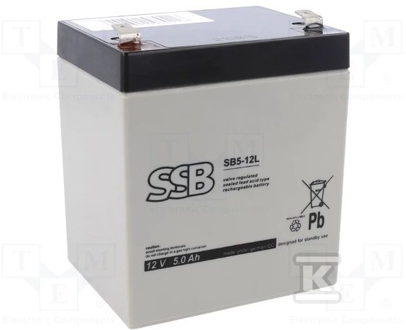 Акумулятор SSB SB 5-12L пропонує ємність 5 Ah при номінальній напрузі 12 V. Його компактні розміри (90 мм довжини, 70 мм ширини та 107 мм висоти) дозволяють легко інтегрувати його з різними пристроями. Характеризується низьким саморозрядом – падіння ємності на 3% після місяця при температурі 25°C – що є важливим при тривалих періодах невикористання. Виготовлений з високоякісних матеріалів, таких як корпус ABS (UL94HB), забезпечує довговічність і стійкість до механічних пошкоджень. Має конектори типу Faston 6,3 мм або 4,8 мм, що полегшує підключення до електричної установки. Розрахований термін служби акумулятора становить 6-9 років для буферної роботи (при температурі 20-25°C), що гарантує тривалу та безвідмовну роботу. Внутрішній опір акумулятора становить близько 35-42,5 мОм.