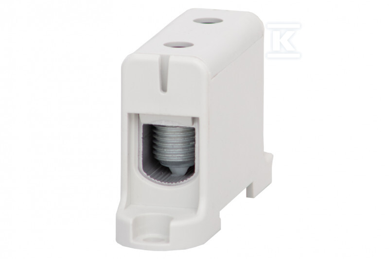 Затиск виконаний з алюмінію оцинкованого, що гарантує добру електропровідність і стійкість до корозії. Корпус з поліаміду (PA) захищає проводи від механічних пошкоджень і впливу зовнішніх факторів. Колодка призначена для проводів з перерізом від 16 мм² до 95 мм², що робить її придатною до різноманітних застосувань – від домашніх інсталяцій до промислових. Можливість монтажу на шині TS 35 полегшує інтеграцію з існуючими системами розподілу.