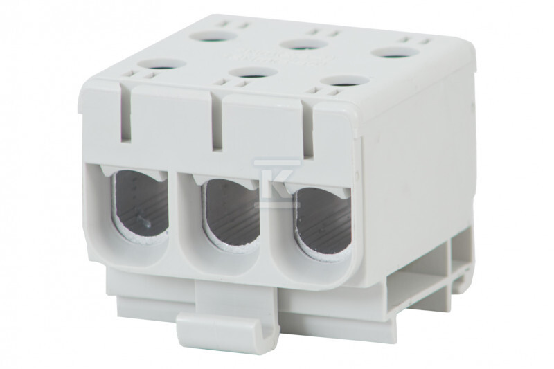 Клемна колодка виготовлена з поліаміду (PA) з клемами з лудженого алюмінію, призначена для провідників з максимальним перерізом 3x50 мм² / 3x50 мм². Забезпечує ступінь захисту IP20.