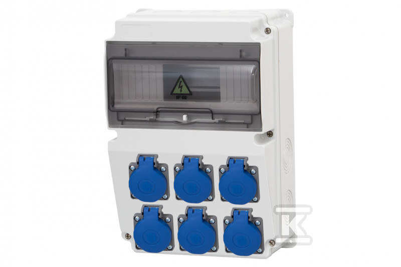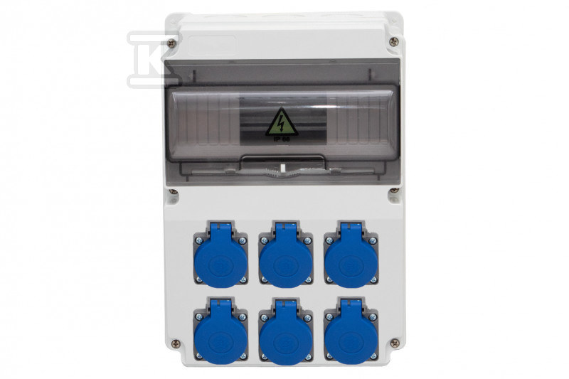Ступінь захисту IP65 гарантує стійкість до дії зовнішніх факторів, що робить розподільний щит ідеальним для використання як всередині, так і зовні будівель. Корпус захищає від води та пилу, забезпечуючи тривалу та безперебійну роботу. Шість розеток 230V – це зручне рішення для живлення різних приладів – від електроінструментів до садового обладнання.